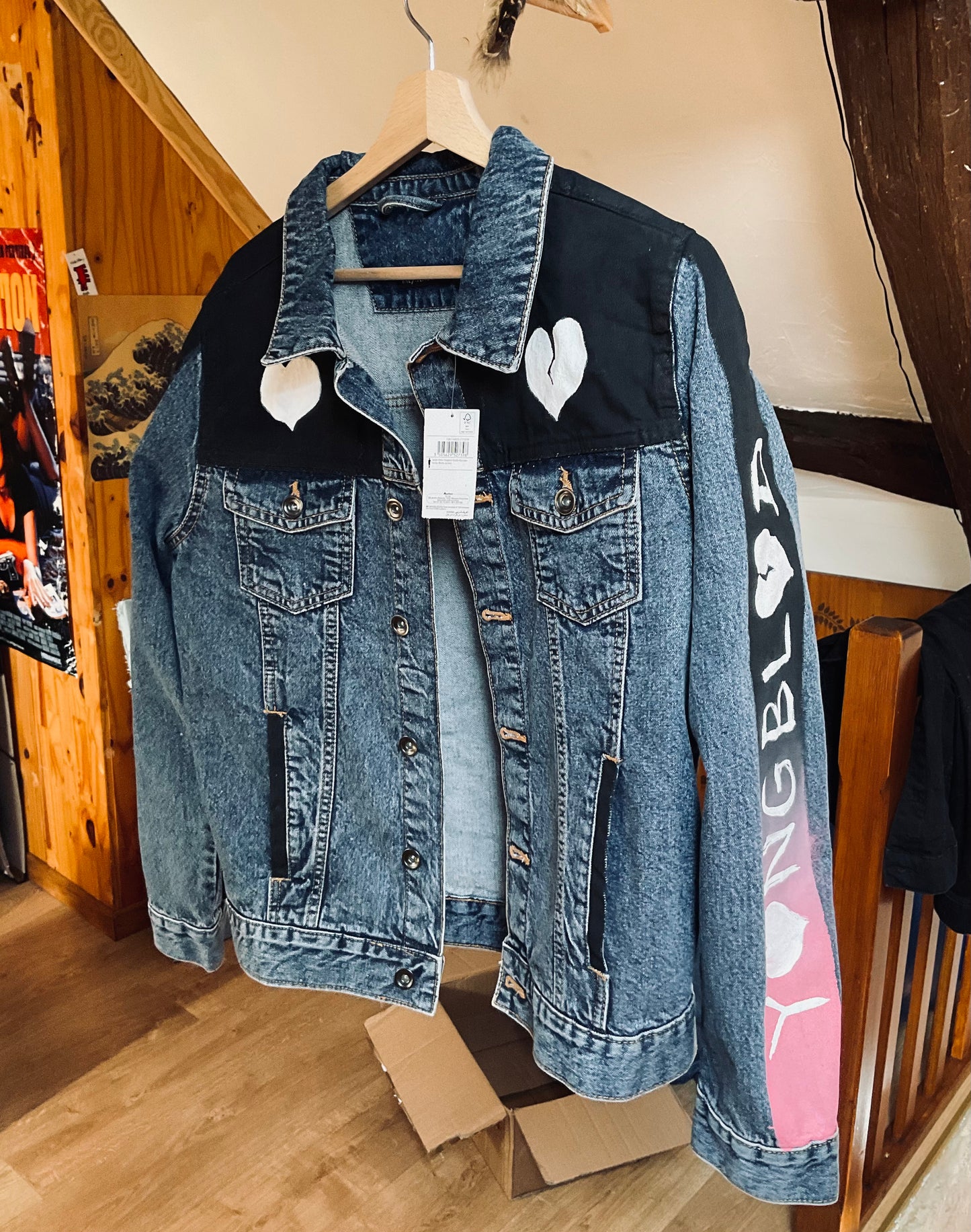 Iron the drawing for 5 minutes, ideally with a towel between the iron and the jeans (to avoid the risk of yellowing the jeans). To be sure that the paint does not come off, I recommend washing below 30°.