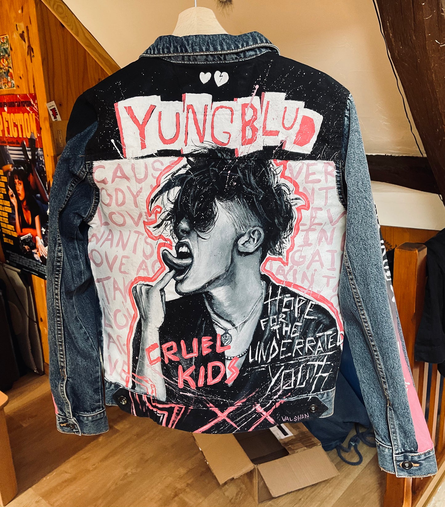 The jacket shown on the pictures is sold copy, the one you buy is identical on another denim jacket.
